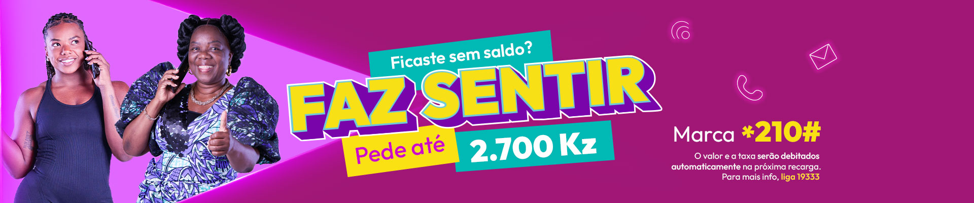 Faz Sentir is Africell’s loan service that ensures your communication doesn’t stop, even when you run out of balance. You can request airtime or bundles directly from your phone, with a limit of up to Kz 2,700.